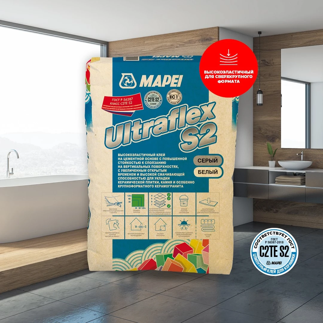 - Наивысший класс по эластичности (S2) позволяет укладывать сверхкрупный формат, облицовывать поверхности, подвергающиеся высокому пешему трафику, вибрационным нагрузкам (лифтовые холлы и т.п.);